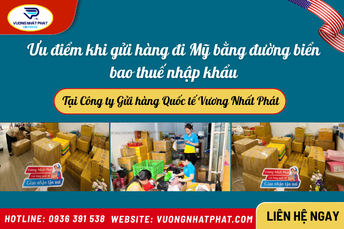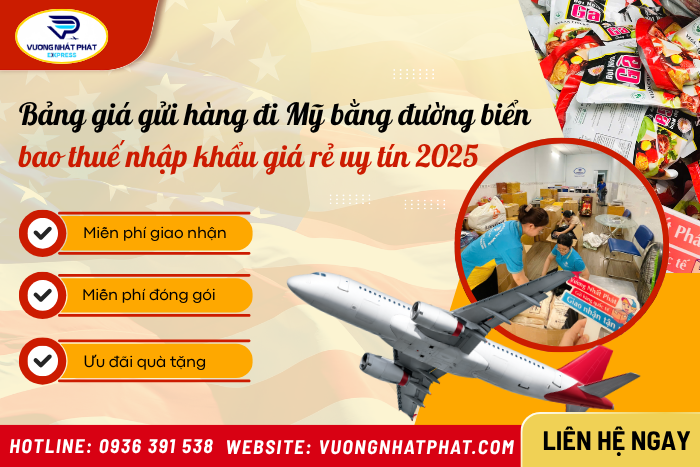 Bạn đang tìm bảng giá gửi hàng đi Mỹ bằng đường biển uy tín, an toàn và bao thuế nhập khẩu cho năm 2025? Công ty Chuyển phát nhanh Quốc tế Vương Nhất Phát Express đã mang đến “Bảng giá gửi hàng đi Mỹ bằng đường biển bao thuế nhập khẩu giá rẻ uy tín 2025” minh bạch, với dịch vụ trọn gói, đáp ứng đầy đủ nhu cầu gửi hàng cá nhân và hàng thương mại cho khách hàng. Với giải pháp gửi hàng hiện đại này, chúng tôi hứa hẹn mang đến trải nghiệm tuyệt vời nhất cho bạn!