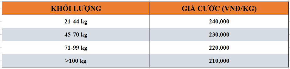 + Giá cước ưu đãi khi gửi hàng đi Mỹ số lượng lớn từ 20 – 100 kg: